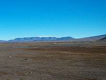 Þórisjökull or Thórisjökull (Icelandic for "Thóris's glacier") is a small glacier and volcano in western-central Iceland, to the southwest of Langjökull glacier. It has an elevation of 1,350 metres (4,430 ft). Kaldidalur lies in the foreground.