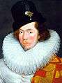 1. The widowed Bess of Hardwick, Countess of Shrewsbury, wears a black gown and cap with a linen ruff, 1590.