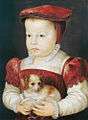 8. Catherine van Arckel of Ammerzoden, aged 8, wears a red velvet dres with embroidery and several gold chains. Dutch, 1586.