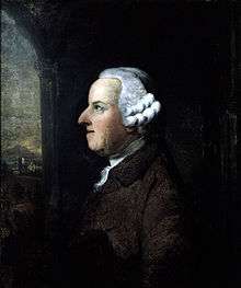 Portrait of Thomas Gray by Benjamin Wilson, date unknown, with image of the church at Stoke Poges where Gray composed An Elegy Written in a Country Church-Yard and where Gray is buried
