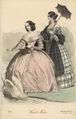 - Fashion plate from Le Moniteur de la Mode. Morning dress (left) with cape-collared jacket and evening gown (right).