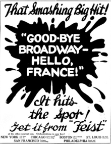 Promotional ad for "Good-bye Broadway--Hello, France!" published in the New York Clipper.[1]