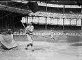 In 1921, Veach was the subject of an unusual motivational tactic by new player-manager Ty Cobb. Cobb believed that Veach, who came to bat with a smile and engaged in friendly conversation with umpires and opposing pitchers, was too easygoing. Detroit Tigers historian, Fred Lieb, described Veach as a "happy-go-lucky guy, not too brilliant above the ears", who "was as friendly as a Newfoundland pup with opponents as well as teammates."[5] Hoping to light a fire in Veach, Cobb persuaded Harry Heilmann, who followed Veach in the batting order, to taunt Veach from the on-deck circle. "I want you to make him mad. Real mad. . . . [W]hile you’re waiting, call him a yellow belly, a quitter and a dog. … Take that smile off his face." The tactic may have worked, as Veach had career-highs in RBIs (126) and home runs (16), and his batting average jumped from .308 to .338. Cobb had promised to tell Veach about the scheme when the season was over, but he never did. When Heilmann tried to explain, Veach reportedly snarled, "Don’t come sucking around me with that phony line." Veach never forgave Heilmann.[6]