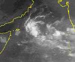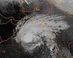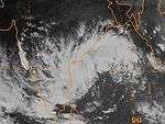 On November 10, an area of low pressure developed over the Bay of Bengal within a monsoonal trough. Moving towards the northwest,[42] the low gradually developed and the JTWC issued a TCFA early on November 13. The next day, the first advisory on Tropical Cyclone 06B was issued.[10] A brief period of rapid development took place as the storm strengthened just below Category 1 status. Shortly before making landfall near Visakhapatnam,[42] 06B reached its peak intensity with winds of 155 km/h (100 mph).[10] At this time, the IMD classified the cyclone as a Very Severe Cyclonic Storm and reported that it had a 60 km (37 mi) wide eye.[43] Rapid weakening followed shortly after landfall and the storm dissipated early on November 16.[10][42]