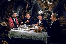 The film was also praised for the performances of the leading actors.[11] This was the first time that major international stars such as Kirk Douglas, James Mason, and Peter Lorre had appeared in a Disney film, although Robert Newton, a well-known actor in British films, had played Long John Silver in Disney's Treasure Island (1950), and Richard Todd, another well-known British actor, had appeared in Disney's Technicolor live-action version of The Story of Robin Hood and His Merrie Men (1952). Mason especially was singled out for his performance of Captain Nemo. Many people who had first seen him on-screen in the film identify him most strongly with this role.[12][13]