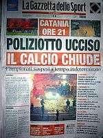 Gazzetta dello Sport frontpage on February 3, the day next to the events. The headline reads: Policeman murdered, football closes