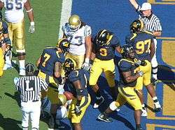 - ↑ "Cal returns 2 INTs for TDs in 41–20 win over UCLA". Yahoo! Sports. Retrieved October 28, 2008.