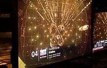 NRK announced the theme art, slogan and design for the Contest on 4 December 2009, during the Host City Insignia Exchange between the Mayors of Moscow, Oslo and Bærum, marking the official kick-off of the Eurovision Song Contest 2010 season.[18] The theme art, a series of intersecting circles, was selected to "represent gathering people and the diversity of emotions surrounding the Eurovision Song Contest."[19] In addition to the base colour of white, the logo was created in black, gold, and pink.[20] A preview of the stage design was released on 6 May 2010, featuring no LED screens, opting instead for various other lighting techniques.[21]