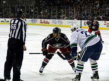 During the same time frame as the Hitchcock rumors, goaltender Curtis Sanford returned from his groin injury on November 13.[24] He made his first start of the season against the Boston Bruins, losing 2–1 in a shootout.[25] Sanford continued his strong play, posting a 3–1–2 record, 1.38 goals against average and .947 save percentage over his next six games.[10] Sanford started 12 consecutive games before Steve Mason made his next start. The number of starts might not have been as numerous, but prior to the November 23 game, Mason was hit in the head by a shot from Rick Nash during pre-game warm-ups and suffered a concussion.[26] Mason returned from his concussion after two games, making a start against the Vancouver Canucks. Mason allowed only one goal in the game despite suffering from cramping in the third period, temporarily being replaced by Sanford for just over three minutes. Columbus won the game 2–1 in a shootout, breaking a nine-game losing streak to the Canucks. After the game, Arniel stated that Sanford was still seen as the team's number one goaltender.[27] However, Mason started four of the next six games with the Blue Jackets going 0–5–1 during that stretch.[14]