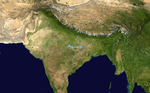 On June 16, the IMD upgraded a well marked low pressure area (WML), located about 100 km east-southeast of Sagar Island, 150 km southeast of Kolkata and 150 km west-southwest of Khepupara (Bangladesh), to a depression, giving it the designation "BOB 02".[12] On June 16, the depression intensified into a deep depression and crossed the West Bengal coast about 100 km east of Sagar Island.[13] On the same day, at 1900 hrs UTC, the JTWC issued a Tropical Cyclone Formation Alert (TCFA).[14] The system drifted further inland and the JTWC cancelled their TCFA the next day.[15] The system weakened into a depression by June 18 and laid centered over Jharkhand.[16] The depression gradually drifted westwards and moved onto northern Madhya Pradesh by June 21.[17] and slowly dissipated into a well marked low pressure area on June 23.[18]