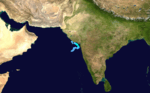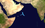 On November 6, the IMD upgraded a low pressure area into a Depression, designating it ARB 03. The system was forecasted to intensify into a deep depression and move towards the Gulf of Aden in the next 72 hours.[39] On the same day a TCFA was issued by the JTWC.[40] The IMD upgraded the storm into a deep depression on November 8, and forecasted that it would intensify into a cyclonic storm within the next 24 hours[41] which was followed by an upgrade to a tropical storm by JTWC.[42] Under the influence of unfavorable conditions and proximity to land, the system weakened and JTWC issued its final warning.[43] Soon the IMD downgraded the storm into a depression.[44] On November 10, the storm dissipated into a low pressure area.[45]