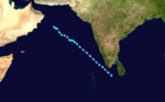 On November 26, at 11:30 am IST, the IMD upgraded a low pressure area south of India near Cape Comorin into a depression, giving it the designation ARB 04.[46] The same day, the JTWC upgraded the storm from a tropical depression to a Tropical Storm and named it 05A.[47] Extensive damage and loss of life was reported in Sri Lanka, where the storm was linked with heavy rains which caused 19 deaths and damage to 5,700 homes.[48] The IMD upgraded the storm to a Deep Depression on November 28.[49] Later on November 29 the IMD downgraded the storm into a depression.[50] Following the downgrading of the storm by IMD, the JTWC on November 30 issued their final warning on 05A. The IMD reported on December 1 that the storm had weakened into a well-marked low pressure area, and issued the final bulletin for the system.[51]