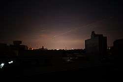 Darkened Ho Chi Minh City skyline at 6:47 PM on 22 May | |
