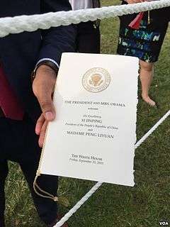 - ↑ "State Dinner for Xi Jinping Has High-Tech Flavor". The New York Times. September 25, 2015.