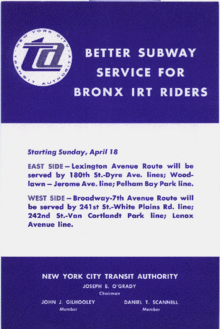 - ↑ "About NYC Transit - History". 2002-10-19. Archived from the original on 2002-10-19. Retrieved 2016-09-18.
