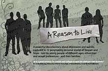 A Reason to Live is a 2009 documentary film about teen and young adult depression and suicide. It captures twelve personal stories of despair and hope, told by young people of different ages, ethnicities and sexual orientations, and their families. It was produced and directed by Allen Mondell and Cynthia Salzman Mondell[1][2] of Media Projects, Inc.