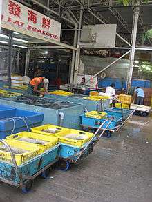 The Fish Marketing Organization (F.M.O) is a self- financed, non-profit-making organization which provides marketing services for fishermen and fish retailers at the Aberdeen floating village.[12] F.M.O's income derives from the commission on sales and surplus earnings. F.M.O's earnings are used to improve the facilities of the Aberdeen Floating Village.[12] Wholesale fish markets operated by the F.M.O are located along the Aberdeen Promenade. Every morning the fish market is crowded with fishermen, fish sellers and buyers.[12]