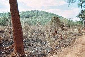 Historically and at present, the primary method for rendering arable land is the slash-and-burn method (also known as "shifting cultivation" or "swiddening").[5] This involves setting fire to areas of primary forest or secondary forest to create fields where crops can be cultivated. After these fields are used for a time and the nutrients in the soil are used up, the land is abandoned and allowed to grow freely.[5][6] Growth begins in the one to three years following the land's abandonment, and within 10 to 20 years it is once again able to hold an established secondary forest.[5]
