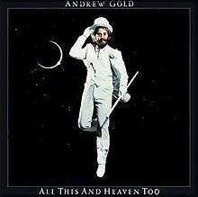 All This and Heaven Too is the third album by singer/songwriter/multi-instrumentalist Andrew Gold, released in 1978 on Asylum Records. It includes the hit singles "Never Let Her Slip Away" (a no. 5 entry on the UK Singles Chart) and "Thank You for Being a Friend" (a no. 25 entry on the Billboard singles chart).[3]