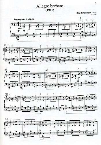 Allegro barbaro, BB 63 (Sz. 49), composed in 1911, is one of Béla Bartók's most famous and frequently performed solo piano pieces. The composition is typical of Bartók's style, utilizing folk elements. The work combines Hungarian and Romanian scales; Hungarian peasant music is based on the pentatonic scale, while Romanian music is largely chromatic.