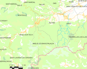 Amélie-les-Bains-Palalda is located in the canton of Arles-sur-Tech and in the arrondissement of Céret.