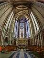 Amiens cathedral contains the largest medieval interior in Western Europe, supported by 126 pillars. Both the nave and the chancel are vast but extremely light, with considerable amounts of stained glass surviving, despite the depredations of war.