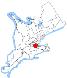 The riding includes all of Hamilton west of a line running along Glancaster Road then to Garner Road then to a Hydroelectric Transmission Line then to Highway 403 to Hamilton Harbour.