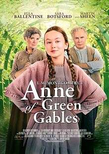 L.M. Montgomery's Anne of Green Gables is a Canadian television film based on Lucy Maud Montgomery's novel of the same name. It first aired on YTV on February 15, 2016 and starred Ella Ballentine, Martin Sheen and Sara Botsford. Montgomery's granddaughter, Kate Macdonald Butler, was one of the film's executive producers.[1]