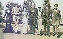 Publicity still with, from left to right, Dona Drake, Dan Duryea, Ann Blyth, Fredric March, Florence Eldridge, Edmond O'Brien, and John Dall | |