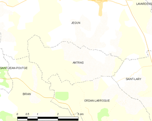 Antras is located in the canton of Jegun and in the arrondissement of Auch.