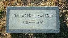 The Bohannon-Trent cemetery contains seven visible graves along with other depressions. The cemetery includes the grave of Joel Walker Sweeney (1810–1860), who popularized the five-string banjo. The grave of Joel Walker Sweeney is marked by a non-historic marker. It also contains the graves of Virginia Sweeney (died 1877), and Robert Rosser (died 1888). Rosser's grave is marked by a marble head and foot stone. The site is enclosed by a fence. The cemetery lies in a field west of the Charles Sweeney cabin less than a mile north of the courthouse.[5]