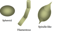 There are three main types of cell morphologies. Though there is no established range of sizes for each type, spheroid microfossils can be as small as about 8 μm, filamentous microfossils have diameters typically less than 5 μm and have a length that can range from tens of μm to 100 μm, and spindle-like microfossils can be as long as 50 μm.[1][14]