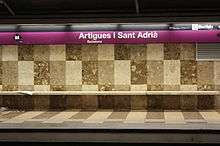 Artigues | Sant Adrià is a Barcelona Metro station in Badalona, named after the neighbourhood of the same name. Despite the latter part of the name, it is not in Sant Adrià del Besòs, and the tag Badalona was added to all signage in the station to avoid confusion. It is served by L2 (purple line). It opened in 1985 with the name Joan XXIII as part of L4 and became a L2 station in 2002. It can be accessed from Carretera de Santa Coloma and from Avinguda de Joan XXIII.