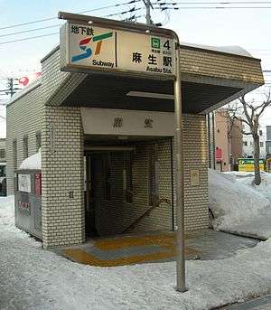 Asabu Station (麻生駅 Asabu-eki) is a railway station on the Namboku Line in Kita-ku, Sapporo, Hokkaido, Japan, operated by the Sapporo Municipal Subway. The station is numbered N01.