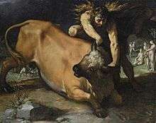 In Ovid's Metamorphoses 9, Acheloüs, a river god, tells Theseus the story of how he lost his horns. There was a very beautiful woman named Deianira, who had many suitors. The many suitors of Deianira gathered in the palace of Deianira's father in hopes of marrying her. However, once the other suitors realized that Acheloüs, a god, and Heracules, the son of Jupiter, wanted to marry Deianira, the other suitors withdrew from the competition. This left only Acheloüs and Hercules as the only two suitors. Each spoke to Deianira's father proclaiming they should be the one to have her hand in marriage. After Acheloüs concluded his speech, Hercules charged at Acheloüs and the two began to wrestle. At the first, the two grappled pretty evenly; however, after many attempts, Hercules finally started to get the better of Acheloüs. Hercules was locked onto Acheloüs' back and put Acheloüs into a strangle hold. Feeling impending defeat in this human form, Acheloüs transformed into a snake. Laughing, Hercules easily began to choke out the snake-formed Acheloüs. Hercules had defeated a much more fierce snake while just a baby, so Acheloüs was no match to Hercules in snake-form. Finally, Acheloüs decided to transform into a bull. Hercules grabbed the bull by the neck and shoved Acheloüs' head deep into the dirt. Then, Hercules grabbed Acheloüs' horn tore it from his head. Hercules then took Deianira as his wife.[45]
