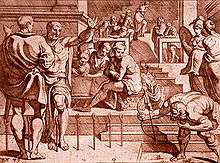 In the first event, Diomedes won a very competitive chariot race with Athena's help.[10] Following the chariot race, Epeios and Euryalos fought in a boxing match. Epeios ended the fight with one punch.[11] Next, Odysseus and Telamonian Aias competed in a wrestling competition. Fearing injury, Achilles ended the wrestling competition in a tie.[12] In the forth event, an Athena aided Odysseus won a foot race over Aias and Antilochos.[13] After the footrace, Telamonian Aias and Diomedes faced off in duel with spears. Once again fearing injury, Achilles ended the fight early and gave Diomedes first because Diomedes would have ultimately won.[14] In the sixth event, Polypoites won a discus throwing competition by launching a discus well beyond the marks set by the other participants.[15] An archery competition between Teukros and Meriones ensued after the discus throwing competition. Meriones won the archery competition after praying for Apollo's help.[16] For the final competition, Agamemnon and Meriones stepped forth to compete in a spear-throwing competition; however, Achilles declared Agamemnon the victor before the competition could take place.[17]