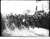 Émile Bouhours, Octave Lapize, who won the Paris–Roubaix from 1909 to 1911, and Seigneur, Vélodrome Buffalo, 25 April 1909, start of the 100 km race