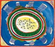 Many Indigenous Australian artists have explored football and the role it plays in the social and cultural fabric of their communities. Arnhem Land painter Ginger Riley completed three works on football in 1996; each work features elements of Aboriginal mythology, such as Ngak Ngak, an eagle spirit who guards the space of play. In Football, the Wet Limmen Bight Country, ancestor spirits travel by boat to a game. Wul gori-y-mar (Football for all Aboriginal People) shows a game played with termite mounds for goalposts while ancestors watch from shelters in the land. It was acquired by the AFL.[5] Munanga (White Fella Way) AFL Football depicts a game at the MCG.