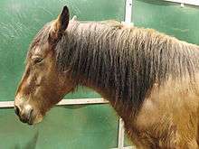 The old Auvergne horse was, according to the naturalist Louis-Furcy Grognier "a weakened emanation of the Limousin breed, an immediate result of Oriental blood".[25][26] André Sanson[27] and Jean-Henri Magne[18] also described the horse as close to the Limousin with "less elegance in the face: the Auvergne is less regular than the Limousin".[25] The general impression is that of a horse "thin, strong, and solid if somewhat disjointed",[28] "lacking in purity and elegance".[17]
