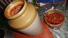 Aavakaaya is a variety of Indian pickle popular in South India with its origin in Andhra Pradesh. The main ingredients are mangoes and aavalu (powdered mustard) and a combination of other spices used for pickling. South Indians are known to have a deep attachment to these spicy pickles. A wide variety of pickles are available in these regions, using mango as their prime ingredient. Besides being made at home, the pickles are available commercially and are exported to the United States, Europe, Japan and many other countries.