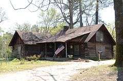 The Averitt House is a historic house in the rural central part of Miller County, Arkansas. It is a single-story log structure, located about 7 miles (11 km) south of Texarkana on the west side of United States Route 71. It was built in 1931-33 by Tom Averitt, the local health inspector at the time, and is a locally unique example of rustic log architecture. It is roughly L-shaped, with a shed-roof porch on its northeastern facade. A single fieldstone chimney rises through the roof near the junction of the L. The walls are made of unfinished logs joined by saddle notches. The logs for its construction were supposedly taken by clearing the site on which it stands. Not far from the house stands a garage, also built by Averitt from logs.[2]