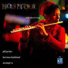 Awakening is an album by American jazz flautist Nicole Mitchell, which was recorded in 2011 and released on Delmark. She leads a quartet with guitarist Jeff Parker, bassist Harrison Bankhead and drummer Avreeayl Ra. Although she's worked extensively with these musicians, the group played together for the first time just days before heading into the studio. Mitchell explained "With this quartet I tried to put the flute more out front as usual. I wanted to dig back into the old school jazz a bit and yet still make room to branch out into never-never land".[1]