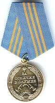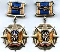 Awarded to military and civilian aviation personnel of EMERCOM for outstanding performance of their assigned duties whether in flying, logistics or engineering operations. A helicopter or jet transport device is worn on the ribbon.[2][3][26] |