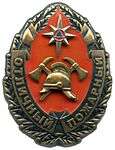 Awarded to personnel of the Ministry for Emergency Situations of Russia and other Russian citizens for long and fruitful activity in the prevention and suppression of fires in critical public facilities. Original Order number and date are unknown, the 2010 Order is a revision of this award.[2][3][4] |