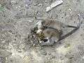 Long-tailed macaques at Bako National Park eating horseshoe crab