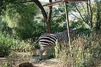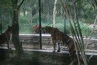 Bannerghatta is the first biological park in India to have a fenced forested elephant sanctuary where elephants can roam around freely without chains. It is designed by elephant expert Carol Buckley and covers an area of 122 acres.[13] The fence is sponsored by animal rights organization People for the Ethical Treatment of Animals (PETA) India, which raised funds of Rs. 1 crore for its installation. “The elephants are absolutely free to roam without human interference, and will be free of tussles with other wild elephants,” Manilal Valliyate, PETA India's Director of Veterinary Affairs was quoted saying in an interview to The Hindu.[14] According to a report published in Times of India, US elephant expert Margaret Whittaker came up with the innovative idea after visiting BBP last year. She gave the local mahouts training on 'protected contact' with the jumbos. This leads to safe interaction between human beings and elephants by keeping them separated while at the same time using positive techniques to manage the animals.[15]