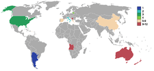 | Rank | World | Africa | Americas | Asia | Europe | Oceania |