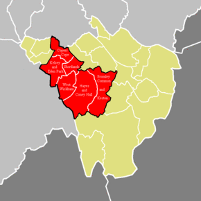 The northernmost third of the constituency is in part contiguous to Penge and Crystal Palace and has similar demographics to the borough to the northwest and to Norwood Junction in having significantly more social housing than the Greater London average.[3] However, these wards in 2005 and 2010 voted strongly for the Liberal Democrats, with Labour also competitive.