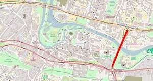 The construction work for the bridge started in 1867, first steel elements set on May 15, 1870, and the final completion of the Bernardyńska street occurred in 1872.[2] The new axis was named "Emperor street", (German) Kaiserstraße), in honor of William I, at that time newly proclaimed Emperor of the German Empire.