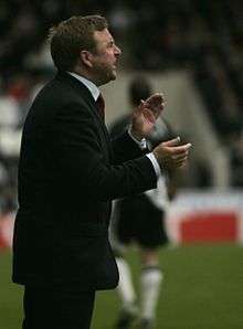 Reid then became manager at another club he had served as a player, Hamilton Academical. He took over from another former Clyde boss Alan Maitland. He took the Accies to the Scottish First Division league title in 2008 and promotion to the Scottish Premier League and won the PFA Scotland Manager of the Year. After leading Hamilton to an impressive seventh-place finish in the Scottish Premier League in 2009/10, Reid was linked with a move to a number of clubs[3] including Swansea City, but rejected their approach claiming to have unfinished business with Hamilton.[4][5] Hamilton were relegated from the top flight in 2011.[6] Reid left Hamilton by mutual consent on 3 April 2013, after more than seven years in the job.[7]